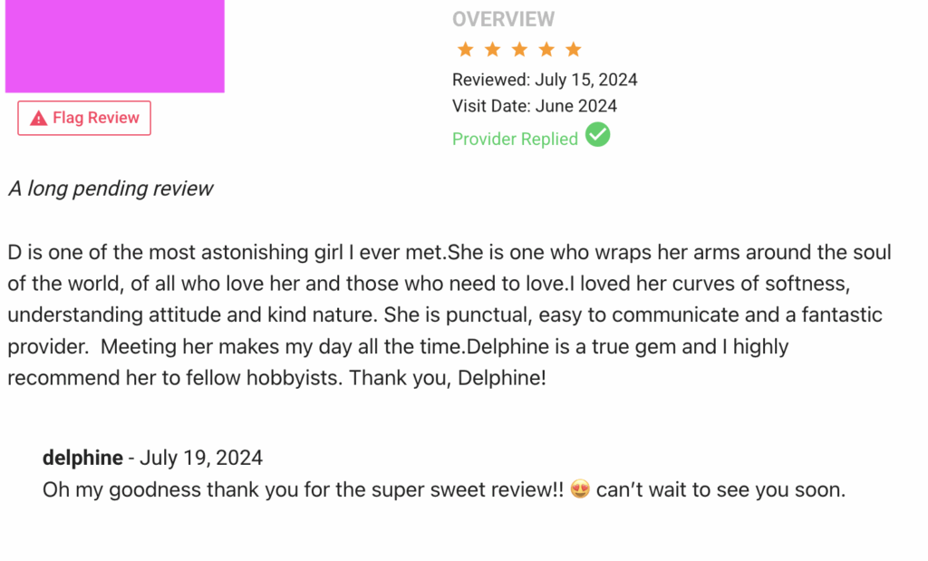Review culture for escorts is a controversial topic. I think reviews were more essential back in the day, before FOSTA-SESTA. Then, there were more sites in which clients controlled the narratives and reviews could make or break a person’s career. Luckily, I came on the scene just before the end of that era, and I have only experienced a small amount of strife from reviews. I’ve found reviews to be largely helpful, especially on sites that discourage explicit ones, like PD.
